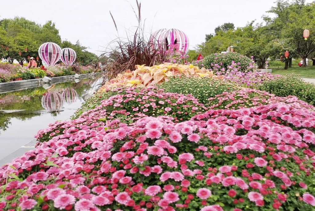国庆期间,景区内10.6万平方米的花海将迎来最佳观赏期,菊科花卉种植面积较往年同比增加142%。五彩斑斓的菊花与其他花卉相互交织,共同勾勒出一幅幅美轮美奂的秋日画卷。