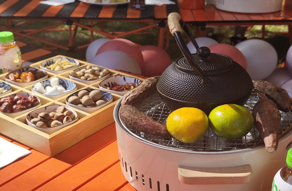 除了咖啡,园区里的“围炉煮茶”更是秋日的“氛围感担当”!午后,可以与亲朋好友围坐在茶炉旁,煮上一壶热茶,烤上一些红薯、栗子等小食,在袅袅茶香与花海萦绕中谈天说地,感受着传统中式生活的惬意与悠闲。