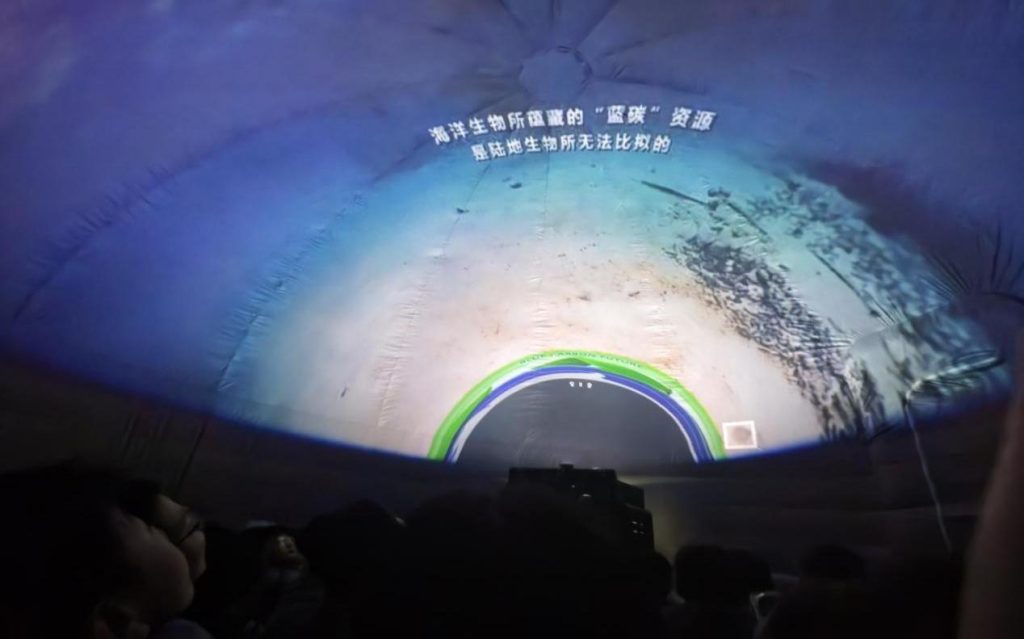 活动伊始,主持人向现场师生介绍了“自然共生”公益项目的初衷与使命,该项目始终致力于生态科普与环保理念推广,此次走进校园,正是希望以青少年为切入点,让“自然共生,零碳未来”的意识深植每一位学生心中。随后,全体师生共同走进球幕影院,沉浸式观看《自然共生,零碳未来》主题公益影片。影片以震撼的视觉效果、生动的画面语言,带领大家穿越森林、湿地与海洋,直观展现了生态系统的神奇与脆弱,解读了“双碳”目标下人与自然和谐共生的路径,让在场师生深受触动。